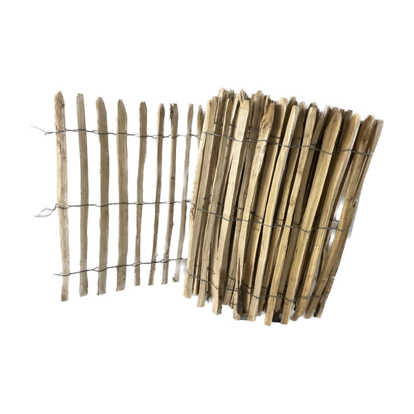 Ons kastanje schapenhekwerk wordt geleverd in handige rollen van 10 meter lang, wat de installatie een stuk eenvoudiger maakt. Houten palen zijn apart verkrijgbaar om je te helpen bij de montage. Voor het onderhoud hoef je je geen zorgen te maken; het kastanje hout vergrijst op een prachtige manier en behoudt zijn stevigheid zonder enige behandeling.